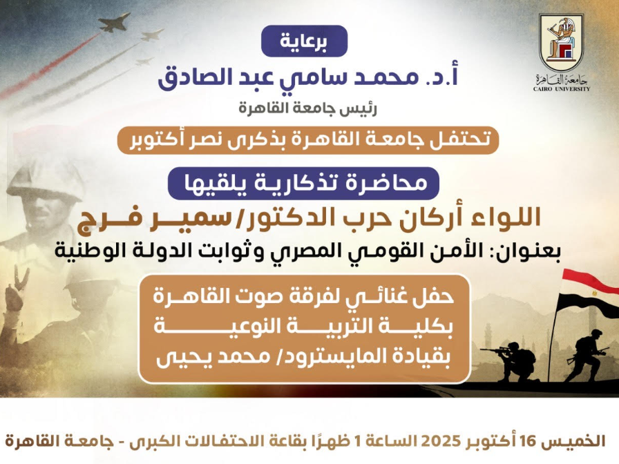محاضرة تذكارية للواء أركان حرب الدكتور سمير فرج بمناسبة احتفال جامعة القاهرة بذكري نصر أكتوبر