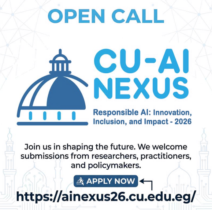 جامعة القاهرة تدعو للمشاركة في مؤتمر CU-AI Nexus 2026 يومي 24 و25 أكتوبر نحو رؤية عالمية للذكاء الاصطناعي المسئول